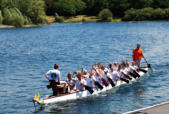 In unserem erster Qualifikationslauf fuhren wir die, bis zum A-Finale gültige Tagesbestzeit von 1:04:74. Im Finale mussten wir uns dann aber den starken Bugwellen sowie den RWE Energiebündel geschlagen geben. Nichtsdestotrotz fuhren wir trotz der langen Pause bis zum Finale dann noch einmal persönliche Bestzeit mit 1:04:68. Da gab es nichts zu meckern.Erstmalig hat Sabrina für uns den Takt angegeben und Stephan und Tommy fuhren auf Schlag. Das hat alles super geklappt und wir konnten uns mit den anderen guten Teams - auch Dank Unterstützung durch Jens, Hendrik und Isi aus Mainz sowie Roxy aus Wiesbaden - messen. Leider waren von unseren eigenen Leuten 5 kurzfristig aufgrund Krankheit ausgefallen.Bei einem fröhlichen Sonne-/Wind-/Wolkenmix hat sich auch der eine oder andere wieder einmal den Pelz verbrannt… Es war ein gelungener Start ind die diesjährige Regattasaison.